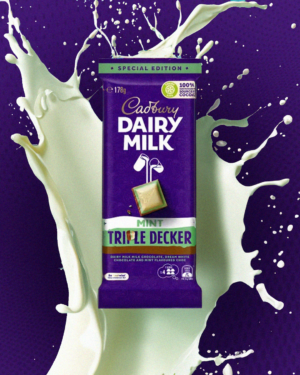 A delicious, triple layered combination of Cadbury Dairy Milk milk chocolate, Dream white chocolate and mint flavoured choc
