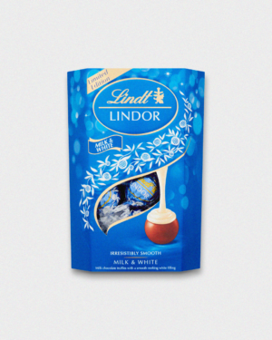 Indulge in pure bliss with Lindor Milk and White chocolate truffles, featuring luxurious Lindt milk chocolate and a delightfully smooth melting white center.