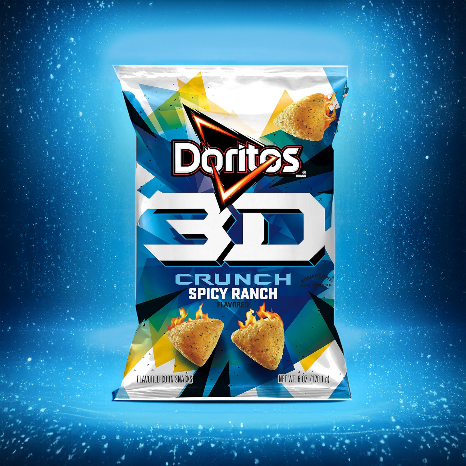 Experience Doritos 3D Crunch: a revolutionary snack that delivers an intense crunch and vibrant twists on classic flavors, with a bold filling of spicy ranch dressing and pepper that will have you craving more!