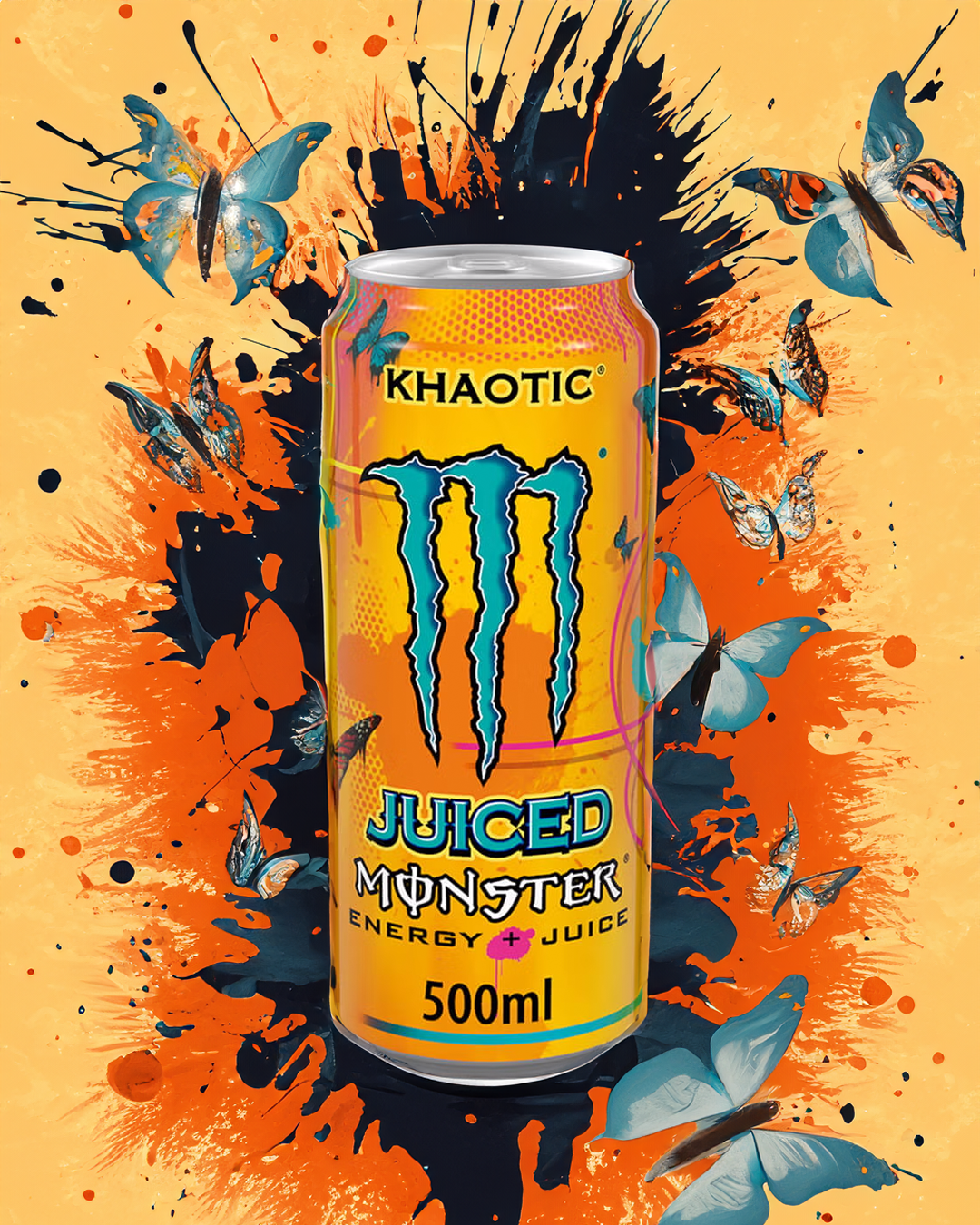 Unleash the vibrant taste of Juiced Monster Khaotic, a refreshing 500ml carbonated energy drink infused with taurine, L-carnitine, inositol, and B vitamins, delivering 160mg of caffeine for an electrifying boost—best served chilled for an unparalleled fruit-flavored experience!