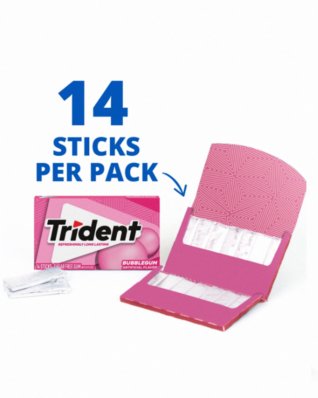 Experience the delightful flavor of Trident Sugar-Free Bubblegum Chewing Gum, featuring 14 refreshing sticks that make every chew a guilt-free treat!